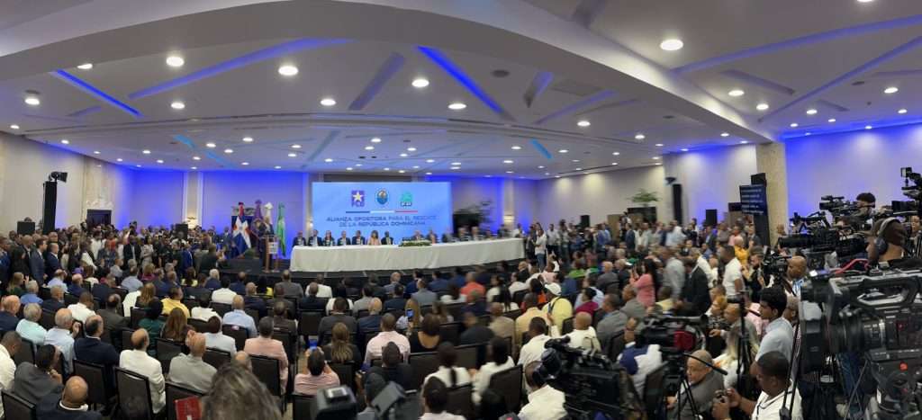 Enfatizó que la alianza de los tres principales partidos políticos “implica una línea opositora firme, responsable y unificada, la confluencia de los proyectos de nación de cada uno de nuestros partidos y el compromiso de concurrir con candidaturas comunes, en la mayoría de los territorios, en el nivel municipal, el congresual y, lo más importante para el pueblo dominicano: el acuerdo compromiso en el nivel presidencial de respaldar a quien de nosotros clasifique a la segunda vuelta, en primer o segundo lugar”.