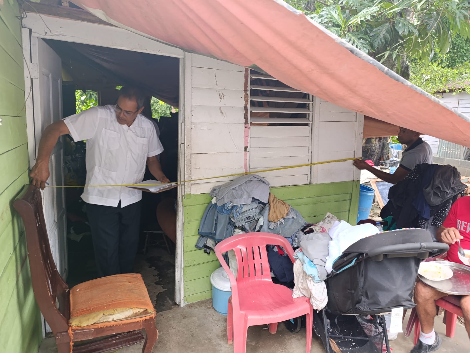 Tras la petición de ayuda de una familia con vivienda parcialmente destruida por la caída de un árbol en Los Alcarrizos, por instrucciones del titular de la Dirección General de Desarrollo de la Comunidad (DGDC), Modesto Guzmán, una comisión acudió a la casa afectada.