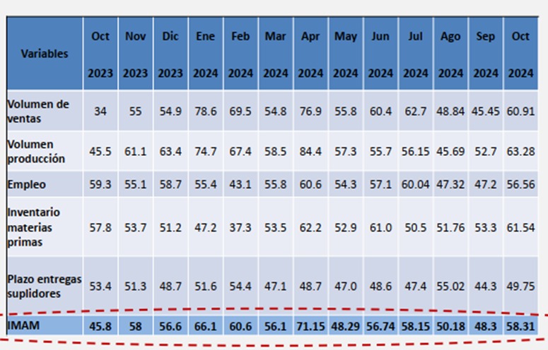Índice Mensual de Actividad Manufacturera (IMAM) asciende durante el mes de octubre 2024