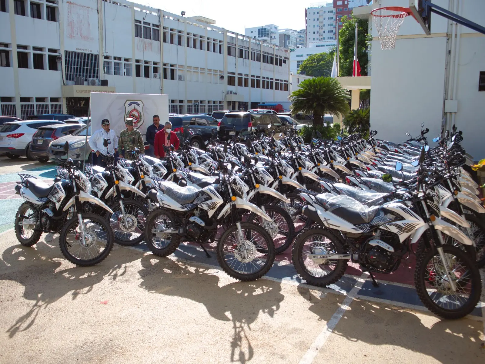 El presidente de la Dirección Nacional de Control de Drogas (DNCD), vicealmirante José M. Cabrera Ulloa, entregó a las unidades operativas 38 motocicletas, para reforzar las labores de lucha y persecución contra el tráfico de sustancias controladas, en el Distrito Nacional, el Gran Santo Domingo y todo el territorio nacional.